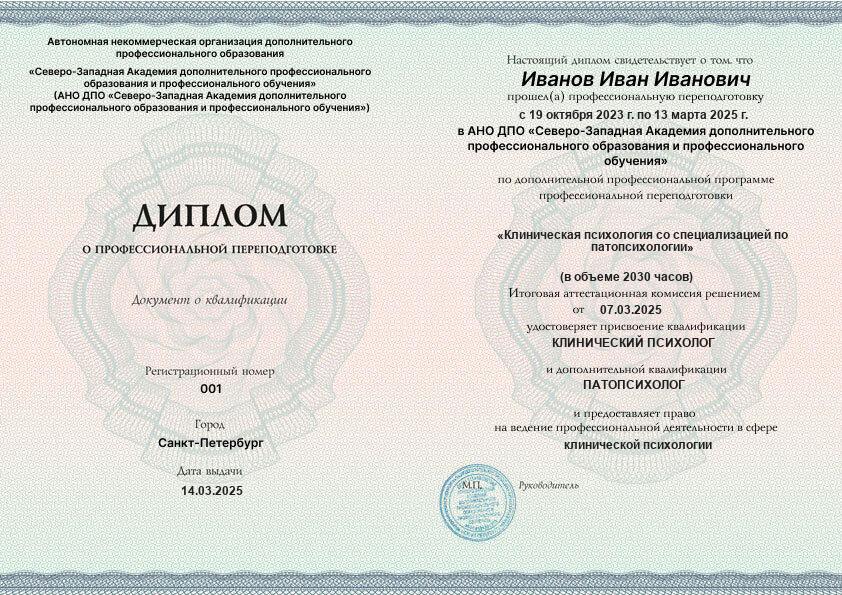 - 2 квалификации: Клинический психолог + Патопсихолог