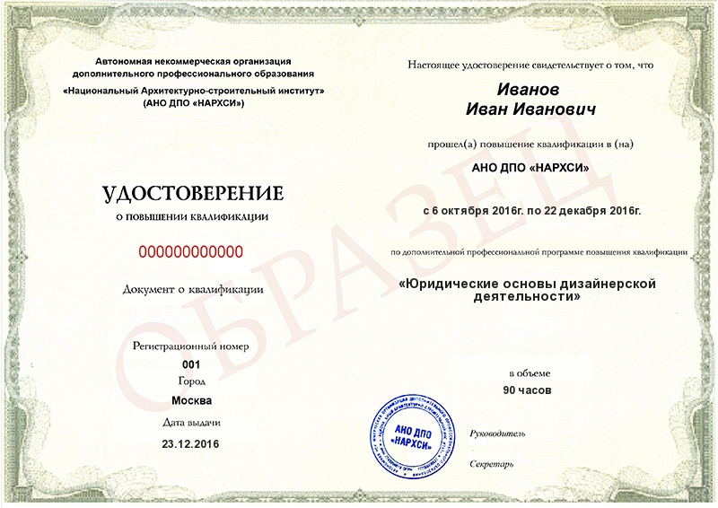 Курс повышения квалификации Юридические основы дизайнерской деятельности (90ч)